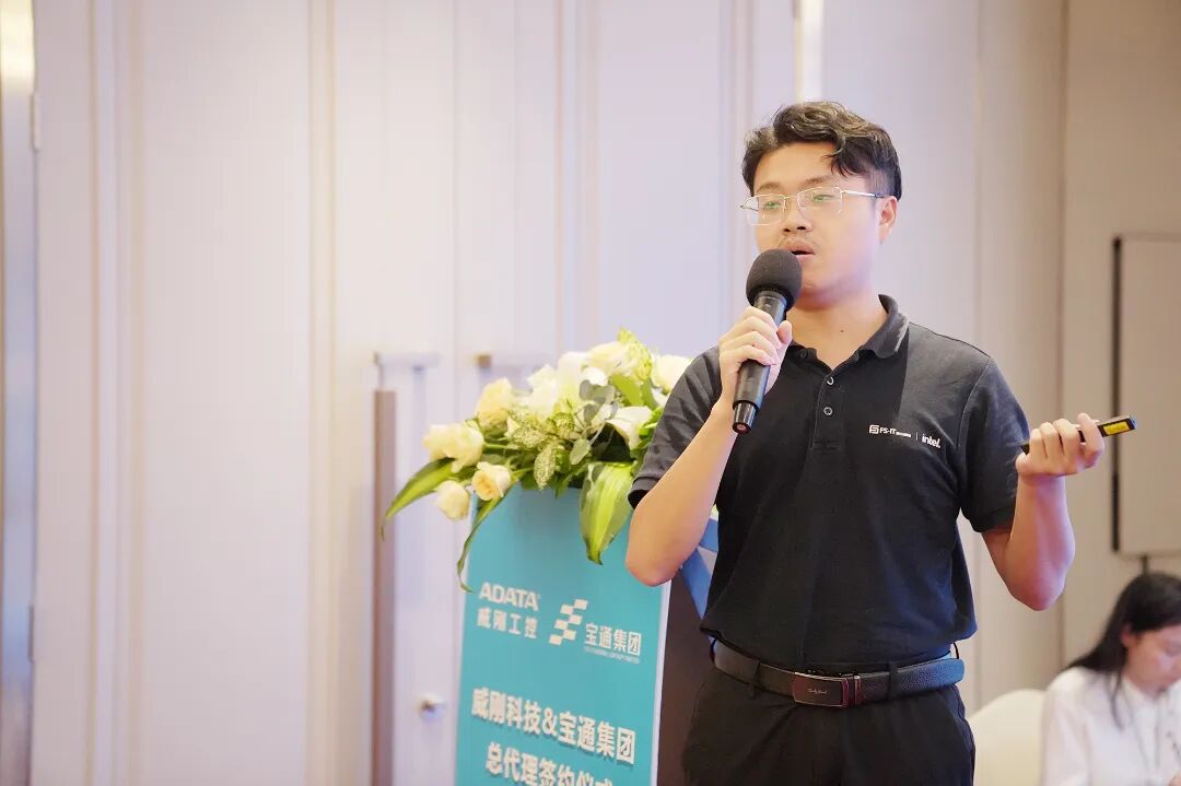 本次會(huì)議是威剛科技工控事業(yè)群在線下的首次亮相,工控事業(yè)群大中華業(yè)務(wù)總監(jiān)王皓正和產(chǎn)品經(jīng)理許郁雯為現(xiàn)場(chǎng)的百余位合作伙伴?客戶(hù)及同行們,詳細(xì)介紹了威剛工控事業(yè)群布局?AI工業(yè)級(jí)解決方案?專(zhuān)業(yè)的軟硬整合技術(shù)?下一代存儲(chǔ)技術(shù)與應(yīng)用展望等內(nèi)容?